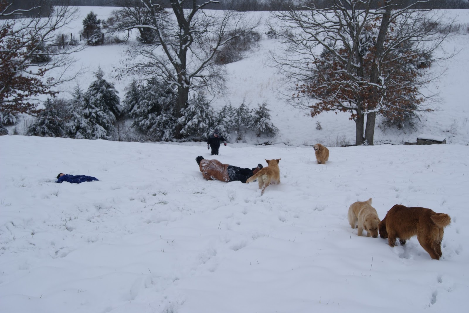 | The snow has melted and temps got back up in the 60s this week. So we took the puppies outside again. Guess what they did? |